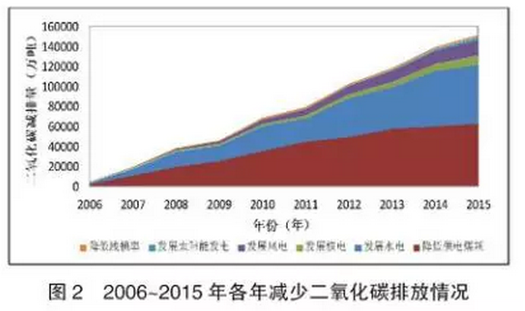 通過以上措施,1978~2015年發(fā)電和熱電聯(lián)產(chǎn)消耗原煤量由1.09億噸增加到18.8億噸,增加了17倍,但是能源利用效率大幅度提高,供電標(biāo)準(zhǔn)煤耗由1978年的471克/千瓦時下降到2015年的315克/千瓦時,換算為電力轉(zhuǎn)換效率提高了約12.9個百分點。