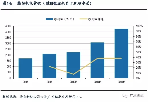 2015年、2016年和2017Q1公司扣除非歸母凈利潤(rùn)分別為1,706.09萬(wàn)元、2,058.54萬(wàn)元和500.78萬(wàn)元。主營(yíng)業(yè)務(wù)收入分別為1.11億,1.22億和0.26億元,2016年上升10%,2017年公司的第一大客戶CATL的擴(kuò)產(chǎn)計(jì)劃共計(jì)8GWh,其中包括溧陽(yáng)5GWh+寧德本部3GWh,測(cè)算得到檢測(cè)設(shè)備的投資需求為6.24億元。在業(yè)績(jī)承諾中,公司2017年?duì)I收預(yù)計(jì)達(dá)到1.79億,同比增長(zhǎng)45.83%。在公司收購(gòu)方案公告中,公司預(yù)計(jì)精實(shí)機(jī)電2017-19年毛利率分別為35.55%、37.41和37.19%。