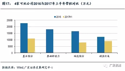 從2017年上半年實(shí)現(xiàn)收入規(guī)模來(lái)看,精實(shí)機(jī)電上半年?duì)I業(yè)收入為 9179萬(wàn)元(未經(jīng)審計(jì)),已實(shí)現(xiàn)16年全年收入的75%,為可比公司中最高。