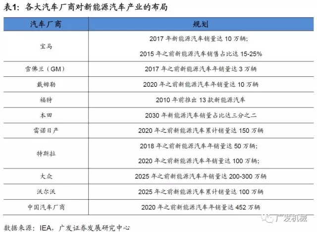 全球各大汽車廠商都在規(guī)劃新能源汽車產(chǎn)業(yè)。面對新能源汽車的高速發(fā)展,全球各個(gè)汽車廠家各自發(fā)布了雄心勃勃的新能源汽車計(jì)劃。根據(jù)IEA披露的各大汽車廠商對新能源汽車產(chǎn)業(yè)的規(guī)劃,到2020年,全球新能源汽車的保有量會(huì)達(dá)到900-2000萬輛。