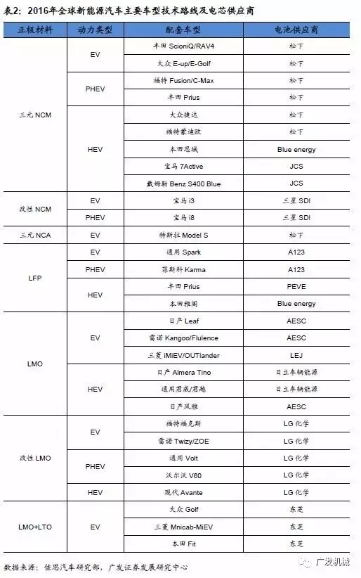 根據(jù)BloombergNewEnergyFinace 的統(tǒng)計(jì),2017年第一季度,全球鋰電池出貨量(僅為混合動(dòng)力汽車和純電動(dòng)汽車用電池)為5273MWh,其中松下占比最多,為42%。2016年全球主流新能源汽車采用的正極材料主要有三元NCM、改性NCM、三元NCA、改性LMO等,主流的電池供應(yīng)商有松下、三星SDI、LG化學(xué)等。汽車企業(yè)與鋰電廠商的合作日益密切,綁定關(guān)系逐漸成型。鋰電池行業(yè)龍頭企業(yè)擴(kuò)產(chǎn)規(guī)劃明確。在市場及各國政策的雙重驅(qū)動(dòng)下,一線動(dòng)力電池廠商持續(xù)擴(kuò)產(chǎn)。