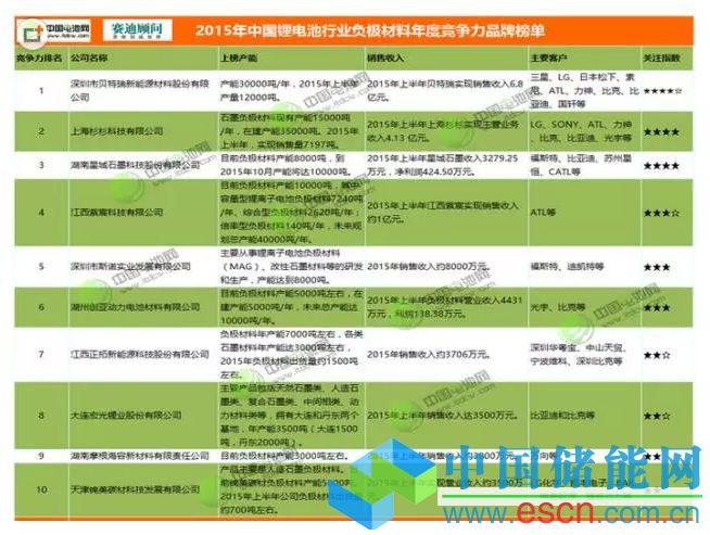 企業(yè)簡介:貝特瑞為中國寶安全資子公司,旗下?lián)碛须u西貝特瑞、雞西長源礦業(yè)、山西貝特瑞、天津貝特瑞、惠州貝特瑞等子公司。主要客戶涵蓋三星、LG、日本松下、索尼、ATL、力神、比克、比亞迪、國軒等。負極材料產(chǎn)能30000噸/年。2015年上半年產(chǎn)量12000噸,實現(xiàn)銷售收入6.8億元,同比增長10.62%。