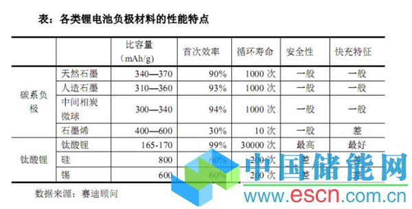 硅合金和鈦酸鋰等負極新材料有望大幅提高產(chǎn)品性能。隨著鋰電池交通工具以及儲能領(lǐng)域的快速增長,由于石墨類負極的高性價比,未來2~3年石墨類負極材料仍會作為主流,我們預(yù)計產(chǎn)量將保持年20%左右的增長。天然石墨主要用在數(shù)碼產(chǎn)品及筆記本電腦上,人造石墨多用于交通工具領(lǐng)域,其增長速度會高于負極材料的增長速度。而天然石墨的增長會低于負極材料的增長速度。從技術(shù)來講,石墨負極材料的性能逐漸趨于理論值,如石墨的克容量為372mAh/g,目前部分廠家產(chǎn)品可以達到365mAh/g,由于生產(chǎn)工藝和固有缺陷,這已經(jīng)基本達到極限值。