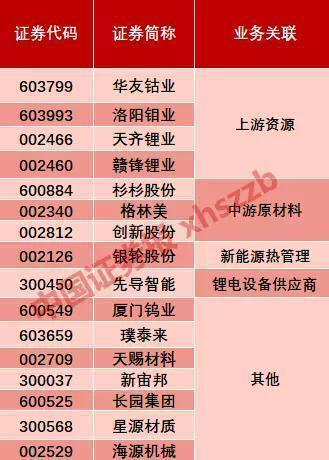 其他關(guān)聯(lián)個(gè)股還有:廈門鎢業(yè)、璞泰來、天賜材料、新宙邦、長(zhǎng)園集團(tuán)、星源材質(zhì)、海源機(jī)械等。