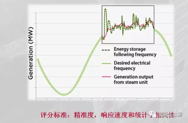 以美國為例,美國的頻率是60Hz,電力公司、電網(wǎng)調(diào)度者希望這個(gè)頻率一直維持在60Hz,如果發(fā)電超過了負(fù)荷,頻率就會(huì)上升,比如從60Hz上升到60.5Hz或者是更高;相反,如果發(fā)電低于負(fù)荷,頻率就會(huì)下降。所以電力系統(tǒng)里面設(shè)計(jì)了很多自動(dòng)的機(jī)制,當(dāng)出現(xiàn)負(fù)荷和發(fā)電不均衡的時(shí)候,這些機(jī)制就會(huì)自動(dòng)調(diào)節(jié)。負(fù)荷多了,發(fā)電就增高一點(diǎn);發(fā)電多了,發(fā)電就下降一點(diǎn)。這些自動(dòng)機(jī)制目的就是為了保持頻率永遠(yuǎn)是一條直線。這個(gè)跟發(fā)電的概念不一樣,發(fā)電就是花1分錢買1分的電,調(diào)頻這件事完全是為電網(wǎng)服務(wù)的。在美國就是利用市場機(jī)制,設(shè)計(jì)一個(gè)市場,然后根據(jù)調(diào)頻的精準(zhǔn)度來付錢。簡單來說就是系統(tǒng)能力越高,響應(yīng)越精準(zhǔn)越快速,這個(gè)系統(tǒng)就越有價(jià)值。這里面涉及到一個(gè)非常復(fù)雜的數(shù)學(xué)公式,但是這個(gè)公式可以把發(fā)電的出功和客戶的要求,通過統(tǒng)計(jì)學(xué)的相關(guān)性,把標(biāo)準(zhǔn)量化。