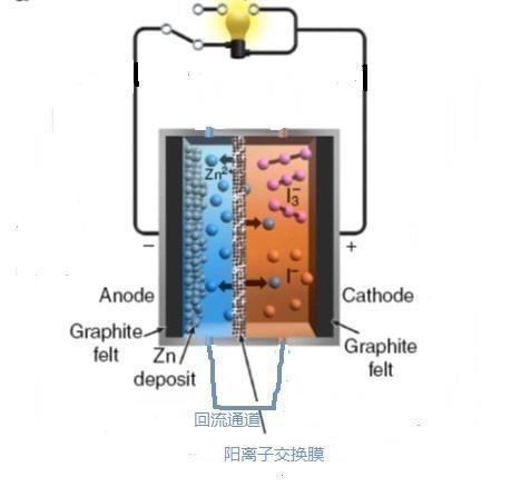 液流結(jié)構(gòu)鋅碘電池工作原理圖