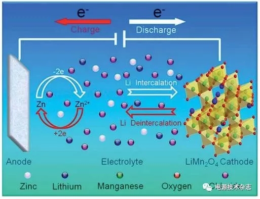 2012年, 本課題組以鋰離子脫嵌化合物為正極活性物質(zhì),金屬鋅為負(fù)積,以鋰離子和鋅離子水溶液為電解液,研發(fā)出一種全新的鋅基鋰電池體系。其充放電機(jī)理如圖1。充電時(shí),鋰離子從正極活性物質(zhì)中脫出,同時(shí)鋅離子沉積在負(fù)極金屬鋅表面。放電時(shí),鋰離子則從水溶液中插入到正極活性物質(zhì)晶格中,而負(fù)極的鋅離子重新溶解到水溶液里。不同于傳統(tǒng)鋰離子電池“搖椅式”的充放電機(jī)理,這個(gè)體系中鋰離子僅在正極發(fā)生脫嵌反應(yīng),避免了負(fù)極鋰脫嵌造成的水分解,顯著提高了電池的循環(huán)壽命。另外,采用金屬鋅作為負(fù)極能夠增加電池的能量密度,同時(shí)也降低了生產(chǎn)成本。作為一種高安全,無污染,長(zhǎng)壽命的新型儲(chǔ)能體系,鋅基鋰電池在不間斷電源,風(fēng)能/太陽能存儲(chǔ),野外備用電池的等領(lǐng)域有著極強(qiáng)的應(yīng)用前景。本文針對(duì)鋅基鋰電池體系,主要從正極材料的選擇與優(yōu)化,電解液的適配,鋅負(fù)極的修飾等方面總結(jié)了近幾年我們課題組的優(yōu)秀研究成果,并對(duì)這一儲(chǔ)能體系存在的問題,以及相應(yīng)的解決方案加以整理和展望。