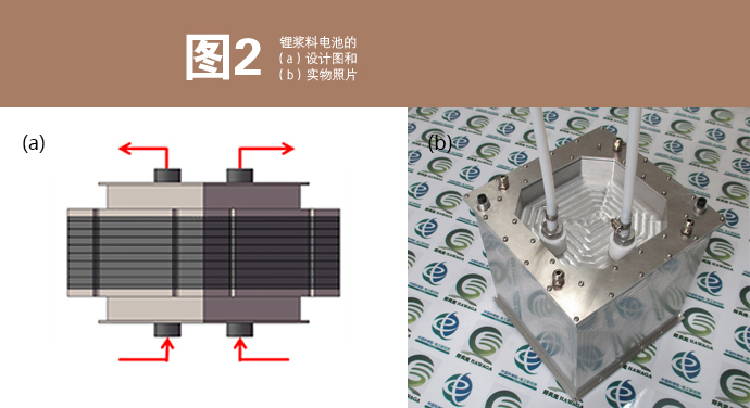 電池反應器是鋰漿料電池的核心部件,由分別位于隔離層兩側的正極反應腔和負極反應腔構成。由于電極漿料具有黏度大、顆粒分散穩(wěn)定性要求高的特點,因此陳永翀教授團隊針對電池反應器的腔體結構進行了特殊設計,以促使電極漿料在腔體內的均勻流動或分布,同時實現較好的導電性能。此外,還對集流體、隔離層等進行設計,減小電池極化內阻,提高隔離層強度,以滿足電池組裝和運行的需求,目前團隊已制備出容量大于40Ah的電池模塊。