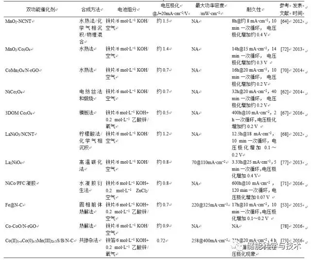 表2 可充電鋅-空氣電池雙功能催化劑