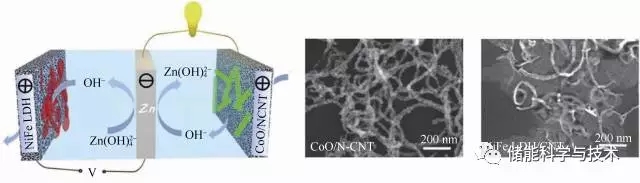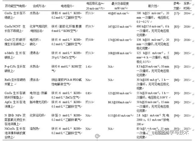 (2)高度結(jié)構(gòu)化的空氣電極設(shè)計(jì)與制備工藝開發(fā)?,F(xiàn)在的鋅-空氣電池研究與堿性燃料電池十分相似,使用碳材料為基底,如Toray碳紙等,然而碳材料在反復(fù)的充放電過程中,極易發(fā)生碳蝕現(xiàn)象。而且,空氣電極的制備過程十分繁瑣,輔助成分的添加也會(huì)產(chǎn)生一些不利的影響。催化劑與基底間作用力較弱時(shí)極易脫落,造成電池性能的衰減。因此,需要發(fā)展一些新型結(jié)構(gòu)的空氣電極結(jié)構(gòu),使電池的使用周期更長。