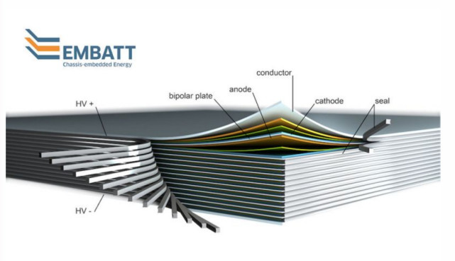 研究人員將所謂的雙極性電極一個(gè)一個(gè)堆疊起來,如同將一張張紙疊起來一樣,電極之間用薄薄的電解液分開,里面還有一種材料防止電荷短路。然后科學(xué)家將疊起來的薄片封裝,規(guī)格約為10平方英尺(1平方米),它的上部與下部與汽車電力系統(tǒng)連接。