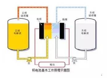 液流電池是一種新型的大型電化學(xué)儲(chǔ)能裝置,是利用正負(fù)極電解液分開,各自循環(huán)的一種高性能蓄電池,是目前的一種新能源產(chǎn)品。液流電池的電解液置于電堆外部,利用循環(huán)泵使電解液流經(jīng)電堆,二者發(fā)生電化學(xué)反應(yīng),從而實(shí)現(xiàn)化學(xué)能與電能的轉(zhuǎn)換以及電能的存儲(chǔ)與釋放。根據(jù)活性物質(zhì)的不同,液流電池可分為全釩、鋅/溴、多硫化鈉/溴、鐵/鉻等多種類型。