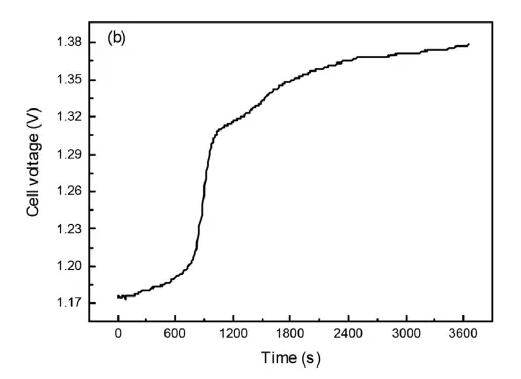 近日,挪威科技大學(xué)的Junli Xu對這種新型的液態(tài)金屬電池進(jìn)行了改進(jìn),采用液態(tài)的Na作為負(fù)極,漂浮在電池的上層,液態(tài)Zn作為正極,沉于電池的底部,以NaCl-CaCl2-ZnCl2熔鹽作為電解液,處在正負(fù)極中間。由于不需要采用隔膜,該電池電阻更低,電壓衰降更少,電流密度更大。該電池的放電平臺范圍為1.4-1.8V,更為重要的是該電池可以在高電流密度下進(jìn)行放電,在100mAh/cm2的電流密度下,該電池的放電電壓仍然高于1.1V,在200mAh/cm2的電流密度下,電壓高于0.8V。