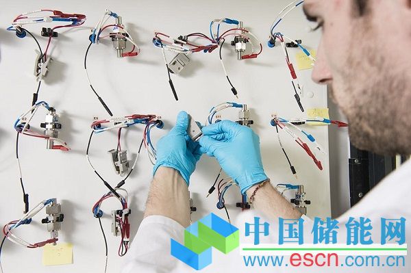 研究人員正在接入測(cè)試一塊鈉離子電池。