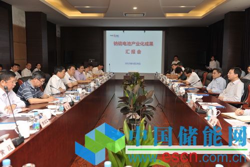 與會(huì)人員參觀了鈉硫儲(chǔ)能公司展示廳、產(chǎn)品制備現(xiàn)場(chǎng),并聽取了鈉硫公司總經(jīng)理茅雁對(duì)于產(chǎn)業(yè)化階段性成果的專題工作匯報(bào)。上海電氣鈉硫儲(chǔ)能技術(shù)有限公司自2012年1月正式運(yùn)作以來,經(jīng)過一年半的努力,在鈉硫電池產(chǎn)業(yè)化進(jìn)程中成果顯著。注冊(cè)資金4億元已全部到位,團(tuán)隊(duì)已達(dá)77人。單體電池性能提升,電池內(nèi)阻降低了3倍,額定功率特性達(dá)到120W@6.5h,提升了4倍,滿足實(shí)用化和安全性的要求,目前已完成第一代電池D120的產(chǎn)品化定型;具備一定自動(dòng)化、連續(xù)化程度的中試線基本建成,自動(dòng)干等靜壓、氣燒窯、自動(dòng)注鈉和注硫設(shè)備已調(diào)試完成,全面貫通后預(yù)計(jì)產(chǎn)能為5MW/年;已完成第一代5kW模塊產(chǎn)品化結(jié)構(gòu)定型,并通過第三方型式試驗(yàn)認(rèn)可。公司在此期間新申請(qǐng)專利67項(xiàng),其中發(fā)明專利35項(xiàng),已授權(quán)18項(xiàng),并確立了上海電力崇明智能電網(wǎng)綜合示范項(xiàng)目、硅酸鹽所IDEA項(xiàng)目、上海電氣中央研究院微網(wǎng)等項(xiàng)目。