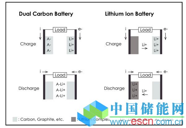 雙碳性電池和鋰離子電池對比圖
