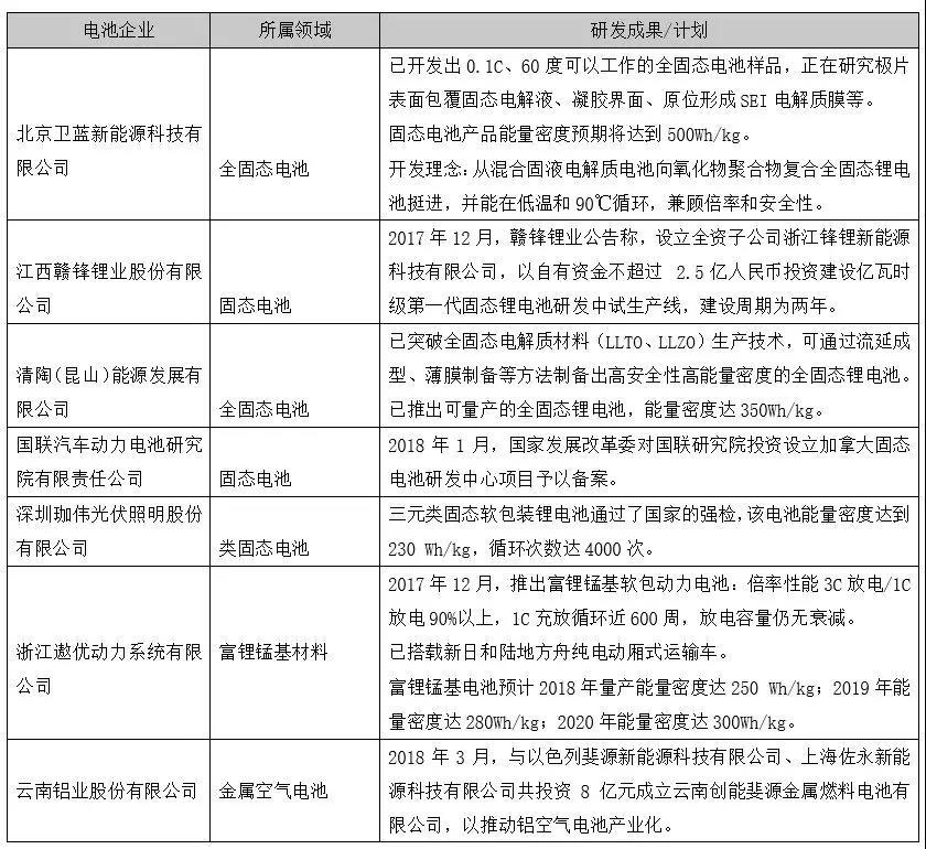 企業(yè)下一代動力電池研發(fā)現(xiàn)狀