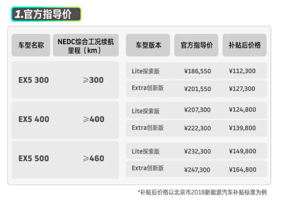 9月10日,威馬正式對(duì)外公布旗下EX5量產(chǎn)車型售價(jià)區(qū)間---18.655萬(wàn)元~24.73萬(wàn)元。以北京地區(qū)為例, 按照2018年國(guó)家新能源汽車補(bǔ)貼政策以及地方補(bǔ)貼政策,補(bǔ)貼后威馬EX5售價(jià)為11.23萬(wàn)~16.48萬(wàn)元。