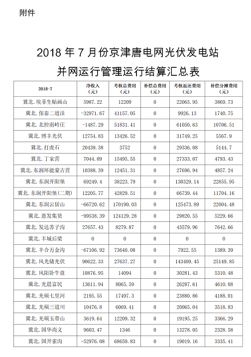 附件:2018年7月份京津唐光伏發(fā)電站并網(wǎng)運(yùn)行管理運(yùn)行結(jié)算匯總表