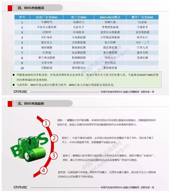 中國儲能網(wǎng)訊:伴隨新能源汽車補貼退坡,價格戰(zhàn)的博弈將會愈加明顯,再加上來自各方勢力的搶灘入局,有望推動2018年電池管理系統(tǒng)BMS領(lǐng)域的洗牌。BMS市場也將由分散變?yōu)榧?,BMS行業(yè)大浪淘沙局面將會逐漸顯現(xiàn)。