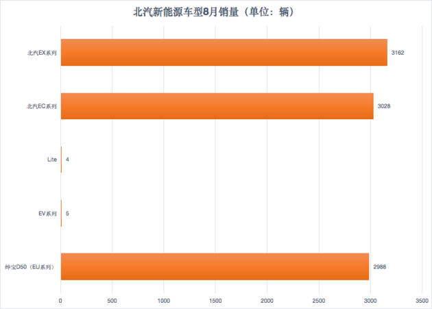 反觀北汽新能源,由于6月前清庫存的原因,少了EC系列車型的支撐,已經(jīng)連續(xù)三個(gè)月退居第三位。盡管替代車型—EC3及時(shí)補(bǔ)上,但北汽新能源的銷量仍略顯劣勢(shì),8月份銷量?jī)H為9187輛。