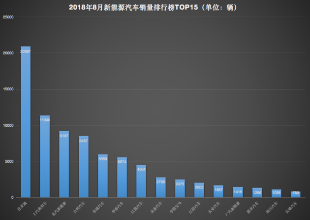 乘聯(lián)會(huì)數(shù)據(jù)顯示,8月,我國新能源乘用車銷量為8.42萬輛,同比增長(zhǎng)60%。從國內(nèi)新能源銷量排行前十五的企業(yè)銷量來看,我國新能源汽車企業(yè)之間,銷量差距懸殊。如,比亞迪以約2.09萬輛銷量奪得冠軍,而長(zhǎng)城的新能源汽車銷量?jī)H為789輛。