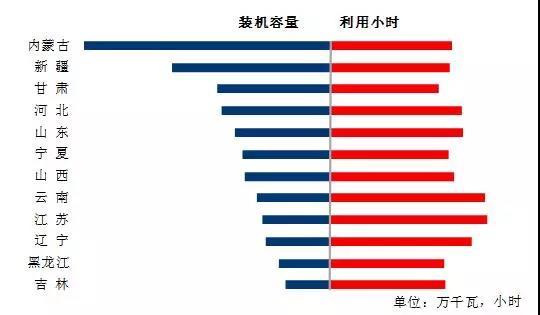 圖5 1-8月份風(fēng)電裝機(jī)較多省份風(fēng)電裝機(jī)容量和設(shè)備利用小時