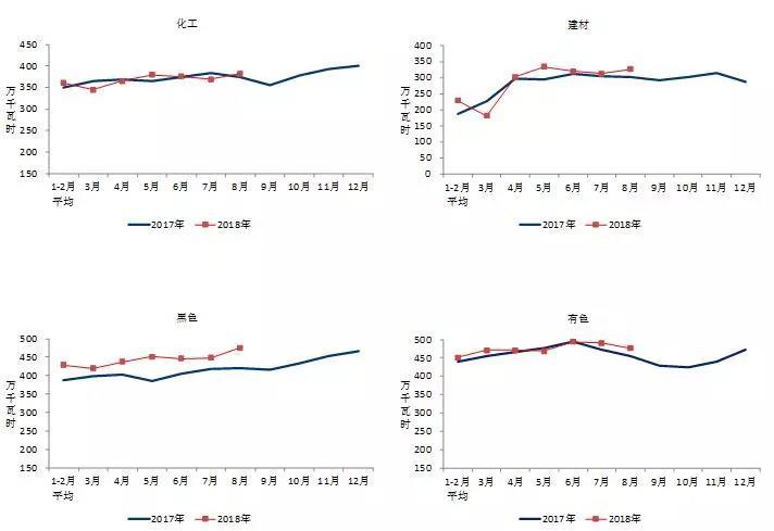 圖3 2017、2018年重點(diǎn)行業(yè)分月用電量情況