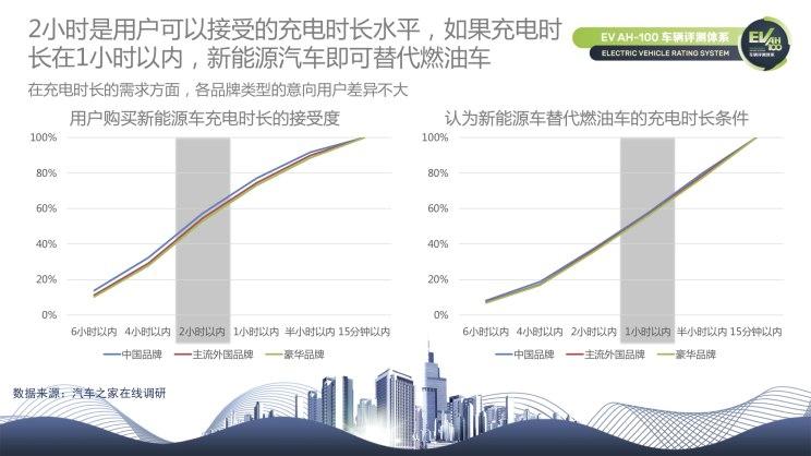 在充電時(shí)長的需求方面,各品牌的意向用戶差別不大。大數(shù)據(jù)結(jié)果顯示2小時(shí)是用戶可以接受的充電時(shí)長水平,如果充電時(shí)長可以控制在1小時(shí)以內(nèi),則新能源汽車有望達(dá)到替代燃油車的水平。不難理解,習(xí)慣于加油的便利性讓用戶對(duì)充電時(shí)間的要求更為嚴(yán)格,充電時(shí)間越短,新能源汽車就越容易代替燃油車。但為什么充電時(shí)間在2個(gè)小時(shí)內(nèi)用戶對(duì)新能源車的接受度會(huì)更高,用戶界定的標(biāo)準(zhǔn)是什么?我們會(huì)在詳細(xì)報(bào)告中給出答案。