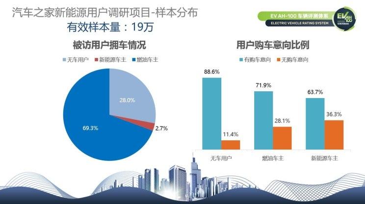 汽車之家在線調(diào)研平臺(tái)涵蓋超過6000萬用戶,真實(shí)車主數(shù)量超過百萬。超大的樣本容量決定了新能源用戶調(diào)研項(xiàng)目結(jié)果的真實(shí)性與專業(yè)性,最終獲得有效樣本量19萬人次,其中新能源車主占全部被訪問用戶的2.7%。