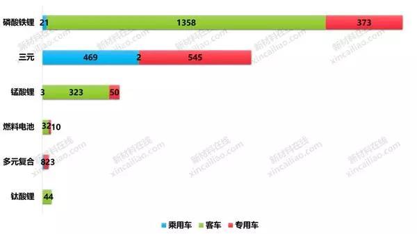 磷酸鐵鋰則主要集中在客車和專用車方面,三元電池則主要集中在乘用車及專用車方面。