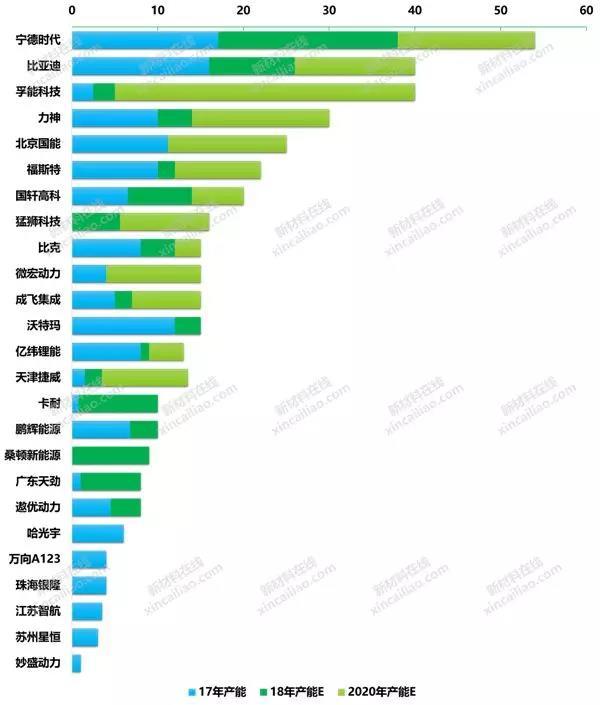其中寧德時(shí)代規(guī)劃在2020年達(dá)到54GWh,比亞迪和孚能科技均規(guī)劃達(dá)到40GWh。