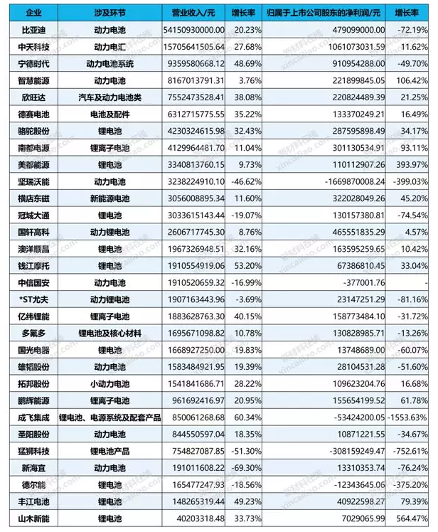 3、鋰電池上市公司普遍營(yíng)收增長(zhǎng),凈利潤(rùn)下滑