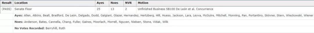 該法案由參議員凱文˙德萊昂(KevindeLeon)起草,近兩年來一直爭議不斷。上周,加州議會已就此進行投票,以44票贊成、33票反對、3票棄權的結果通過了該法案。在此后進行的加州參議院投票表決中,該法案以25票贊成、13票反對、2票棄權獲得通過,距離成為現實又近了一步。接下來,該法案將被提交到加州州長杰里˙布朗(JerryBrown)手中,經其簽署之后正式出臺。
