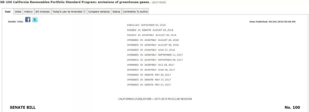 一項名為SB100的法案詳述了以上目標,通過逐步增加電力系統(tǒng)終端中清潔能源供電的比重,擺脫加州電力對化石燃料的依賴,減少碳排放。該法案提出,到2045年12月31日,供加州終端消費者使用的零售電力和政府采購電力必須100%來自可再生能源和零碳能源。加州此前曾制定過一份“2030年50%清潔電力”的計劃,SB100在此基礎上進一步升級:2026年12月31日之前實現50%可再生能源供電目標,2030年12月31日之前將上述比例提高到60%。為了實現上述循序漸進的清潔供電目標,該法案規(guī)定了電力零售商和當地公共電力公司采購合格可再生能源電力產品的最低采購量。