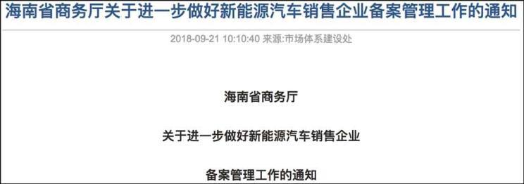 不過擬在海南銷售新能源汽車的企業(yè)仍需備案,申請備案的企業(yè)需要滿足兩個條件,一、產品進入國家新能源汽車公告目錄和免稅目錄;二、企業(yè)本身具有固定的經營場所及完善的銷售和售后服務體系。