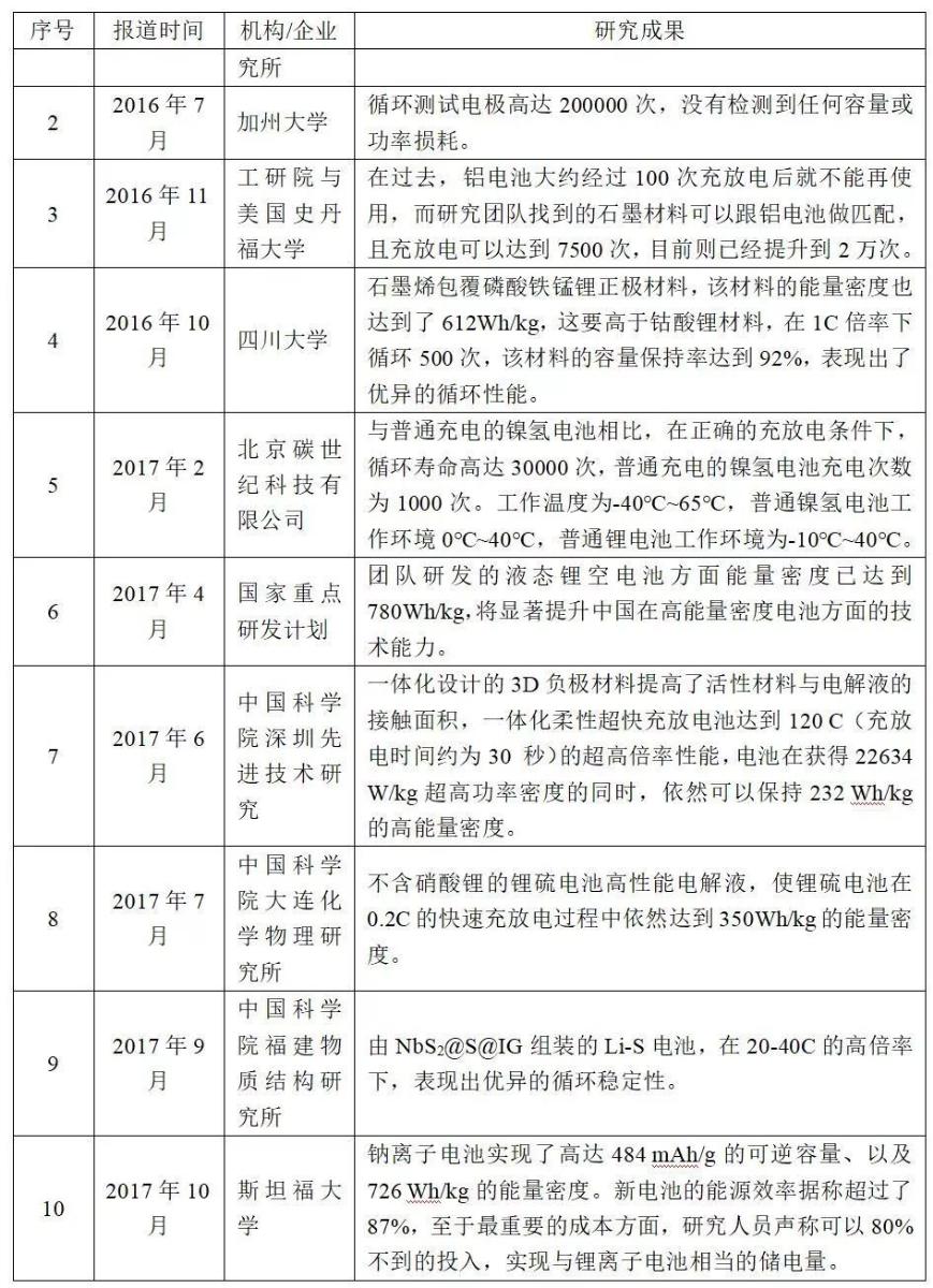 除了對當前鋰電池的改善及固態(tài)電池的布局,在動力電池技術創(chuàng)新中,國內(nèi)外企業(yè)和機構/大學紛紛進行了不同嘗試,一些指標較目前水平有較大改善,為動力電池性能的提升提供了有力參考。