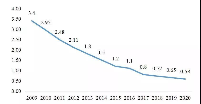 圖3 動力鋰電池電芯成本44(單位:元/Wh)