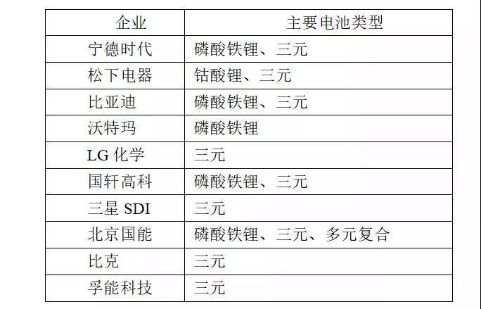 1、三元和磷酸鐵鋰電池為企業(yè)布局重點