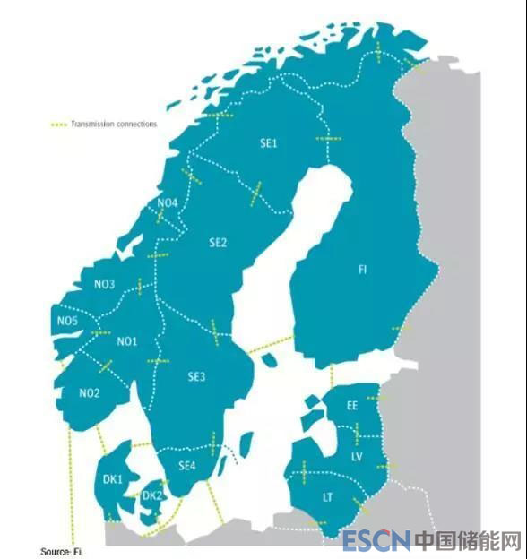 北歐電力市場是國際上第一個真正意義的跨國電力市場,其形成過程是一家市場做強、周邊國家紛紛加入的模式,運行幾十年來獲得了豐富的經(jīng)驗。北歐地區(qū)主要指挪威(Norway)、丹麥(Denmark)、瑞典(Sweden)和芬蘭(Finland)四個國家。四個國家電力系統(tǒng)聯(lián)系緊密,已經(jīng)形成統(tǒng)一的大電網(wǎng),并且和周圍鄰近歐洲國家也有聯(lián)絡(luò)線相連。北歐四國之所以能形成統(tǒng)一電力市場,與其電源的互補性密切相關(guān)。挪威絕大部分為水電。瑞典和芬蘭的能源構(gòu)成中核電占比較大,其次為水電。在瑞典其他能源類型中,生物質(zhì)能發(fā)電及石油發(fā)電占了很高比例達(dá)到45.8%。在丹麥原先大部分為火電,但隨著可再生能源的利用,風(fēng)電的比例在持續(xù)提高,占到總額的近一半左右。