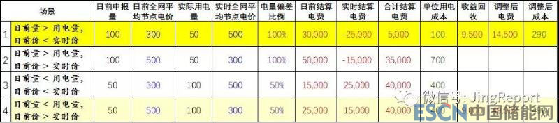 首先假設(shè)最大申報偏差率( )為5%,根據(jù)日前申報電量、實際用電量和日前電價、實時電價的大小不同,排列組合下列四種場景進(jìn)行對比:
