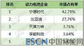 從電池企業(yè)來看,寧德時(shí)代以2.45Gwh的動(dòng)力電池裝機(jī)量位列第一,占9月總裝機(jī)量的42.79%;比亞迪緊隨其后,動(dòng)力電池裝機(jī)量為1.59Gwh,占比27.76%;排名第三的天津力神,動(dòng)力電池裝機(jī)量為0.21Gwh,占比3.76%。同上月相比,排名前三的動(dòng)力電池企業(yè)依舊沒有發(fā)生變化,行業(yè)龍頭企業(yè)地位依舊穩(wěn)固。