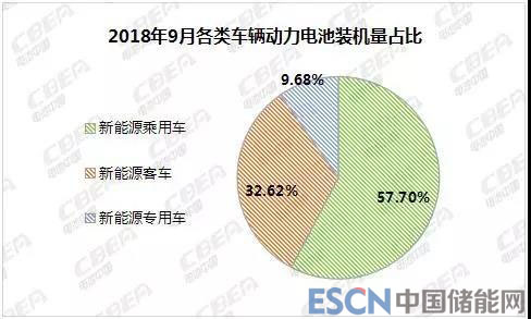 從車輛細(xì)分類別來看,2018年9月,我國新能源乘用車動(dòng)力電池裝機(jī)量約3.3Gwh,環(huán)比增長11.08%,同比增長145.4%;新能源客車動(dòng)力電池裝機(jī)量約1.86Gwh,環(huán)比增長121.13%,同比增長46.45%;新能源專用車動(dòng)力電池裝機(jī)量約0.55Gwh,環(huán)比增長52.92%,同比下降32.49%。
