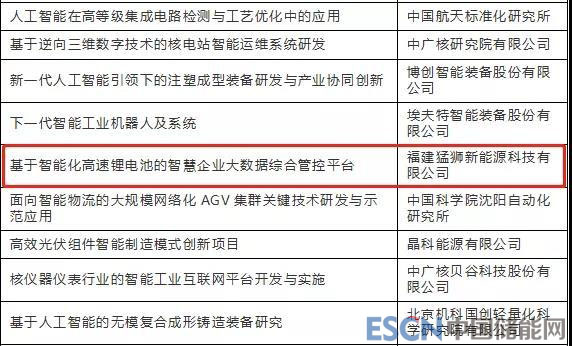 中國儲能網(wǎng)訊:近日,國家首批人工智能與實體經(jīng)濟深度融合創(chuàng)新項目名單發(fā)布,猛獅科技旗下福建猛獅新能源“基于智能化高速鋰電池的智慧企業(yè)大數(shù)據(jù)綜合管控平臺”項目成功入選,同期上榜的還有中科院、中廣核研究院、中國航天標(biāo)準(zhǔn)化研究院等機構(gòu)的申報項目。
