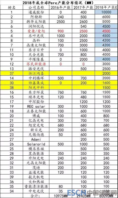 2018年年底Perc電池總產(chǎn)能會突破80GW!