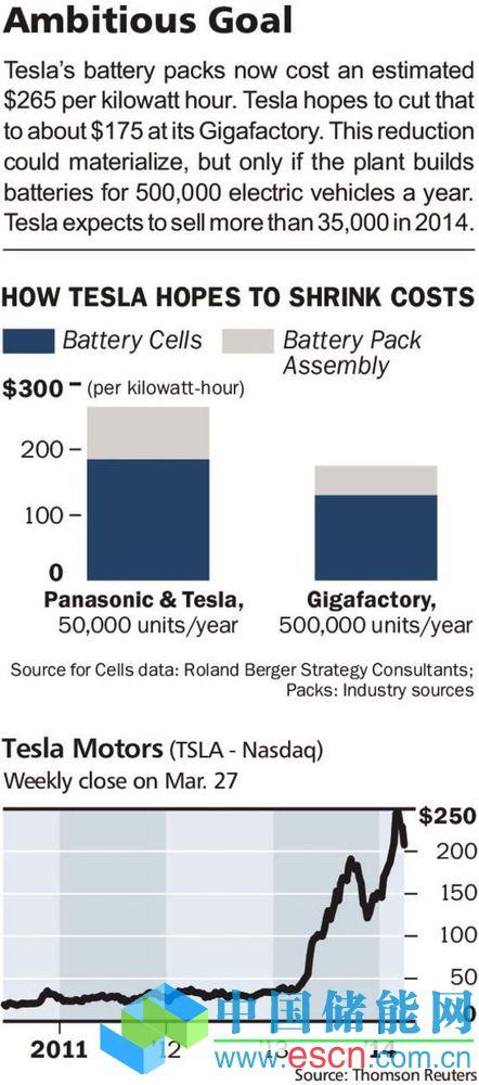 羅蘭 貝格戰(zhàn)略咨詢公司(Roland Berger Strategy Consultants)駐德國(guó)斯圖加特的電動(dòng)汽車專家沃爾夫?qū)?伯恩哈特(Wolfgang Bernhart )認(rèn)為,根據(jù)特斯拉與松下簽訂的鋰電池生產(chǎn)協(xié)議,后者為特斯拉生產(chǎn)的鋰電池每千瓦時(shí)電池組成本為185美元,并能夠滿足年產(chǎn)50000輛電動(dòng)汽車對(duì)鋰電池的需要。而技術(shù)進(jìn)步以及Gigafactory的規(guī)模效應(yīng)則有可能使電池組的每千瓦時(shí)成本降至130美元。