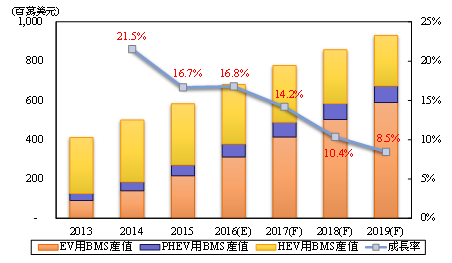 ▲ 2013—2019全球車用BMS產(chǎn)值預(yù)估