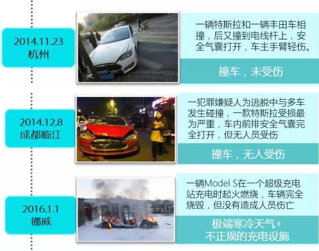 2016年8月16日,特斯拉ModelS90D車(chē)輛在法國(guó)西南部城市比亞里茨(Biarritz)路試時(shí)發(fā)生起火,車(chē)輛盡毀,所幸并無(wú)人員傷亡,并且在事故前,車(chē)輛就發(fā)出了警報(bào),足見(jiàn)Tesla在電動(dòng)汽車(chē)安全方面的工作做得還是非常到位。盡管如此,自上市以來(lái)Tesla還是經(jīng)歷了種種“取經(jīng)磨難”,這里先為大家梳理出Tesla的主要安全事故: