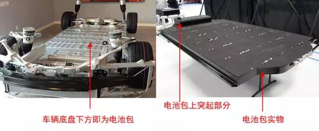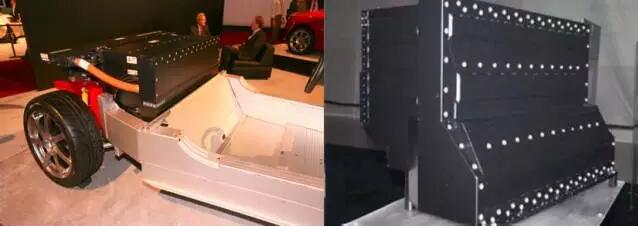 圖 4 Tesla Roadster的電池包在車(chē)輛內(nèi)安裝位置(左)和實(shí)物圖(右)
