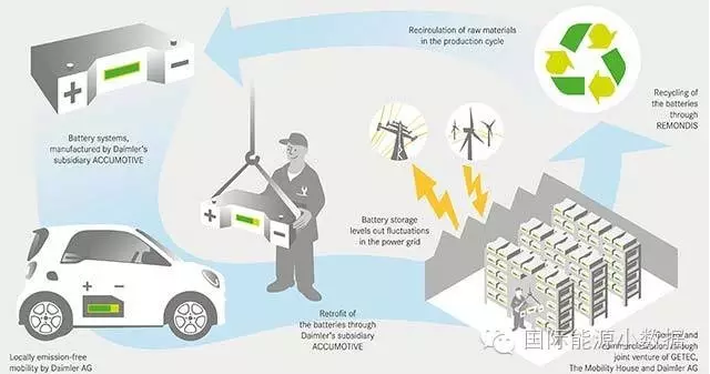 目前德國三家公司Daimler、The Mobility House、GETEC聯手建設一座世界上最大的回收裝置,將電動車退役下來的動力電池經過處理作為電網儲能電池使用,年底建成以后將具有13兆瓦時的儲能規(guī)模。而另一家德國公司REMONDIS將接手回收處理10年后徹底耗盡的儲能電池。